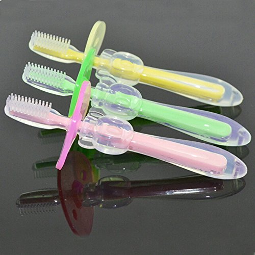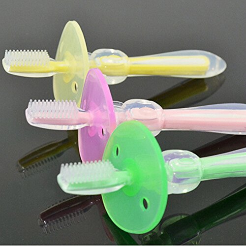 Features: Made of food grade silicon, soft, safe and hygienic, will not hurt the oral cavity of your babies Safe protective slice, prevent the brush from going deep into the oral cavity of babies when they are cleaning their teeth The handle is soft and anti-slip Can be pasteurized under high temperature Compatible with those babies over than 6 months Descriptions: Weight: 40g Weight: 40gSize: 125mm*48mm*35mm Color: Yellow, Red, Green, Blue Material: Bristle: Active silicon, temperature resistance 120° External handle: Active silicon, temperature resistance 120° Internal handle: PP, temperature resistance 120° Protective slice: Active silicon, temperature resistance 120°