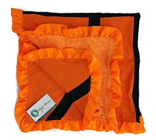 - Onyx Arrow Baby Blanket, Basketball Cotton Print, Orange Minky Dot, Satin Ruffle Trim, Mix and Match
