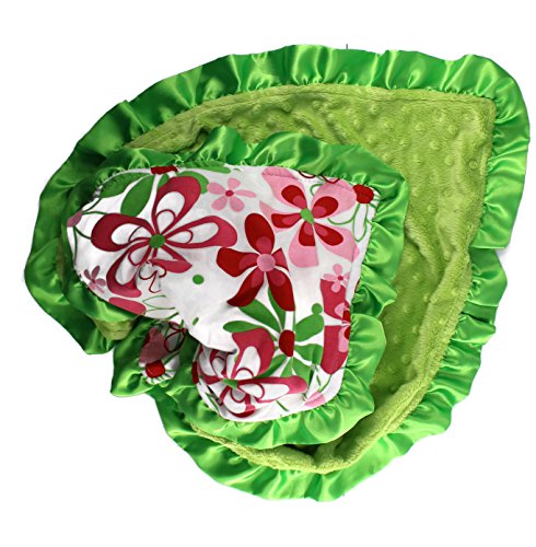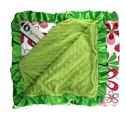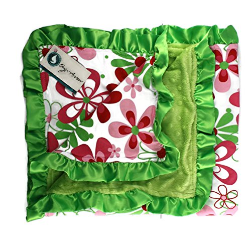 - Onyx Arrow Baby Blanket, Red Green Retro Flower Cotton Print, Spring Green Minky Dot, Satin Ruffle Trim, Mix and Match