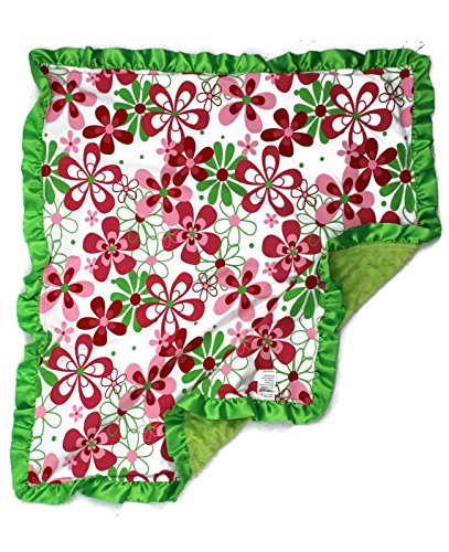 Onyx Arrow Baby Blanket, Red Green Retro Flower Cotton Print, Spring Green Minky Dot, Satin Ruffle Trim, Mix and Match by Onyx Arrow