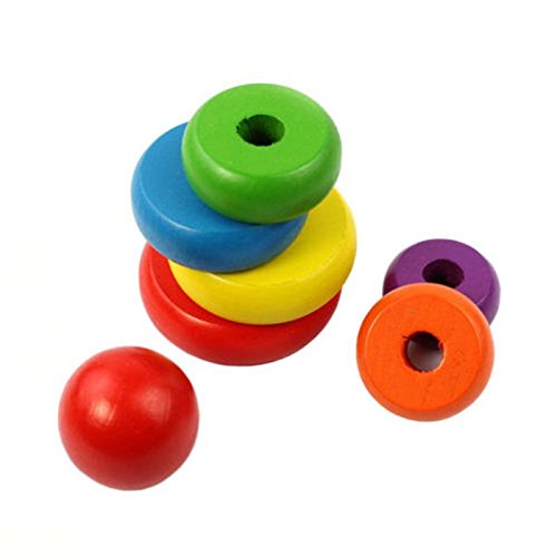 100 %新品、高品質の乳幼児向け木製スタッキングのリングタワー玩具レインボー再生のスタック材質:木製カラー:レインボーサイズ:約15.5 cm x 7.5 cm x 7 cmパッケージに含まれるもの:1 x木製ベース木製のドーナツ6木製のボール1