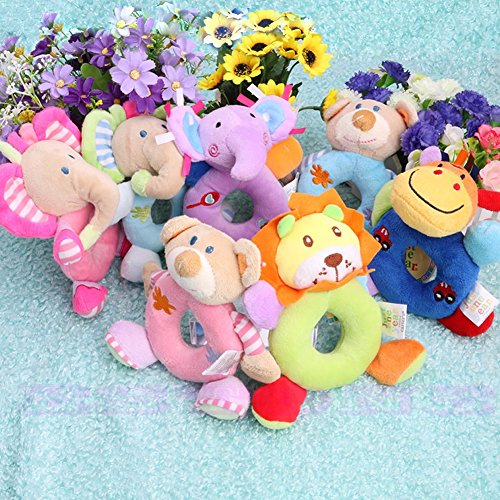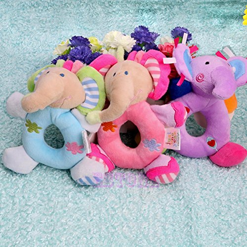 Description Features: Fun for baby to touch and easy to hold Pinch for a rattling sound Encourage baby to touch and explore Color downy,soft handle,lovely modelling, when they are shaken sound Specification: Age: Baby (0-2 years old) Material: Plush + Cloth Model: Deer, Lion, Pink Elephant, Purple Elephant, Blue Elephant, Pink Bear, Blue Bear Size: 14 x 16 cm/5.5 x 6.3'' Weight: 32 g Quantity : 1 PC Note: 1. Due to the different monitor and light effect, the actual color of the item might be slightly different from the color showed on the pictures. Thank you! 2. Please allow 0.5-1cm measuring deviation due to manual measurement. Package include 1 x Baby hand bell