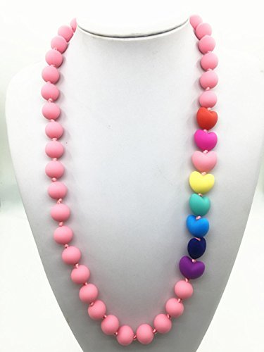 Baby and Mommy Beads Food Silicone Teething - Food grade Silicone Teething Necklace with heart beads baby chew necklace Nursing necklace wholesale silicone necklace teether (Pink Rainbow) by saft silicone