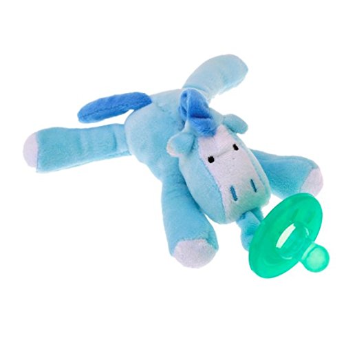 * YOU GET 2 PACIFIERS WITH TOY in every order! You can alternate the pacifiers to keep baby entertained.;* BEAR & BLUE DRAGON FOR BOYS - These toys will delight your little guy while the pacifier keeps him relaxed.;* MONKEY & PINK CATERPILLAR FOR GIRLS - Your little sweetie will feel so special when you give her these marvelous pacifiers with accompanying toy.;* SAFE MATERIALS - EASY TO CLEAN. Pacifier detaches to clean in dishwasher or sink. Materials are safe for baby. Designed to prevent choking.;* 100% MONEY BACK GUARANTEE - NO risk! Love your Animal Pacifier 2 Pack or return it for your money back.