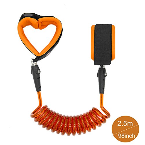 迷子防止紐 長めの2.5m 迷子防止縄 幼児 子供 安全 ベルト セーフティお出かけ用品 事故防止 伸び縮可 超軽量 (オレンジ)