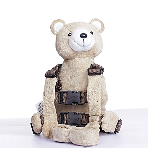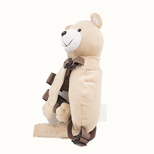 迷子防止 ぬいぐるみ 赤ちゃん歩行補助 アニマルハーネス 迷子紐 アウトドア安全ベルト付 (ベージュクマ)