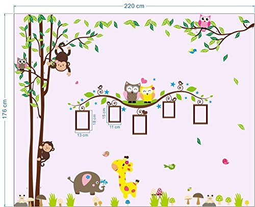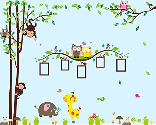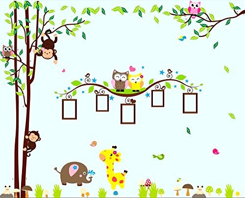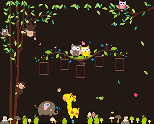 Nursery Wall Decals XL, Nursery Tree, Owl, Monkey, Elephant,Giraffe Wall Decal, Picture Frame Wall Decals XL, Nursery Owls Wall Decor, Kids Room Wall Decals [並行輸入品]