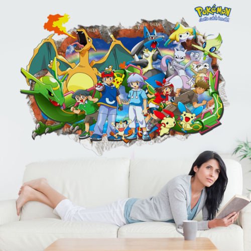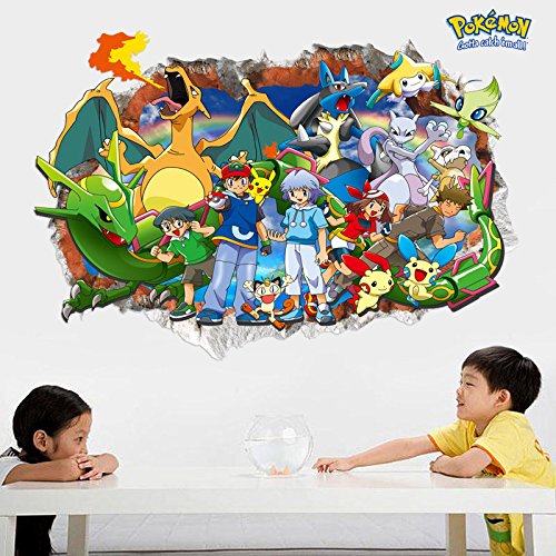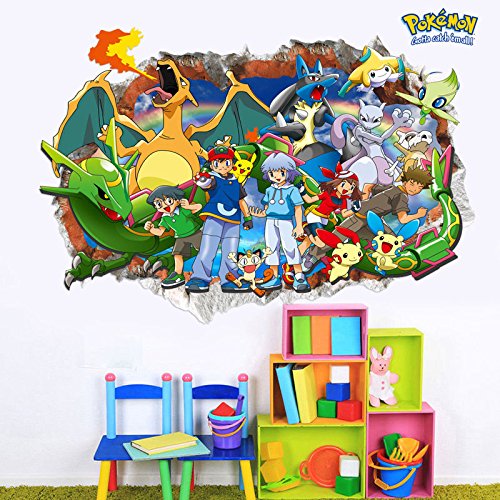 ホット3dポケモン移動かわいいピカチュウ壁デカールステッカービニールの壁画のキッズルームのインテリア