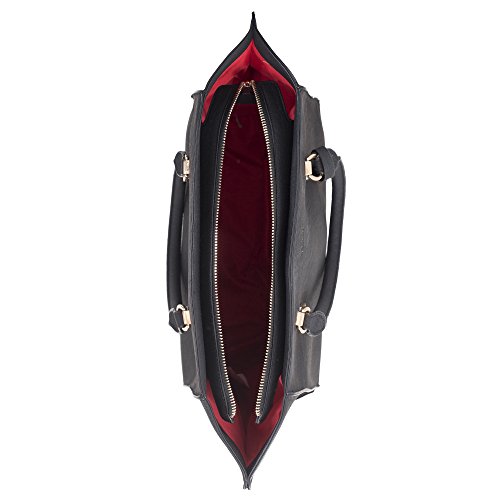 The unique black ‘Acacia’ tote bag from LaBante London is unique shaped bag featuring a bright red lining. Its large enough to carry every day to work and fun enough to take to your evenings out and everything in between Featuring internal zip pockets and change pockets it’s the perfect handbag.