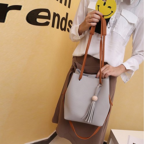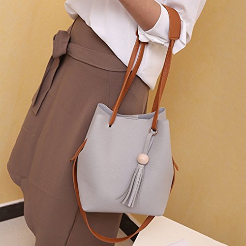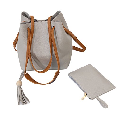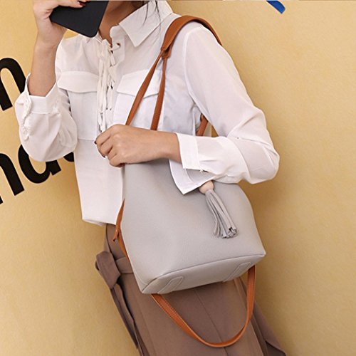 FairySu レディース ショルダーバッグ トートバッグ 2点セットミニポーチ付き レザー 鞄 通勤 通学 大容量 (グレー) [並行輸入品]