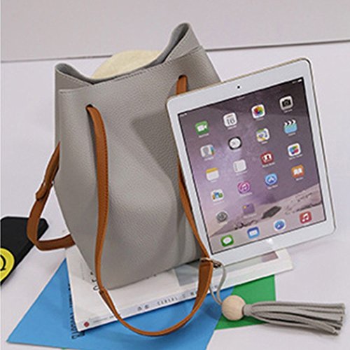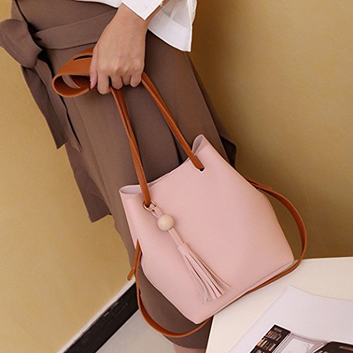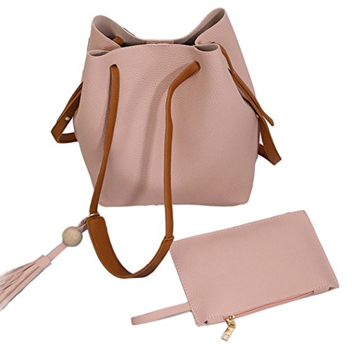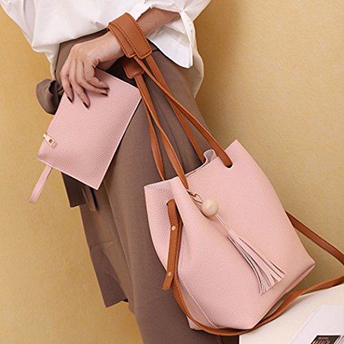 Buddy レディース ショルダーバッグ トートバッグ 2点セットミニポーチ付き レザー 鞄 通勤 通学 大容量 (ピンク) [並行輸入品]