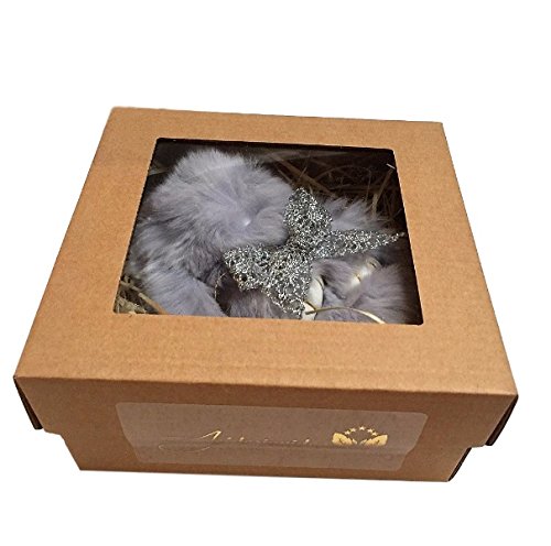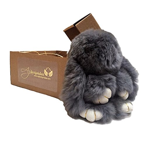 100 % Real Rex Rabbit Fur Fluffy Bunnyキーチェーンハンドバッグ財布バッグチャームギフトボックス グレイ
