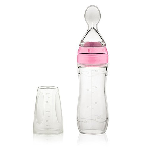 Pixco Feederのスプーンを使った自宅の赤ちゃん哺乳瓶新生児の栄養補助食品のための食用米穀類シリコンボトル (ピンク)