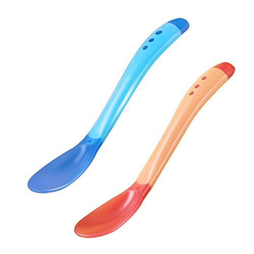赤ちゃんの温度スプーン食品グレードのシリコーンソフトヘッド子供の食器の変色 (组合)
