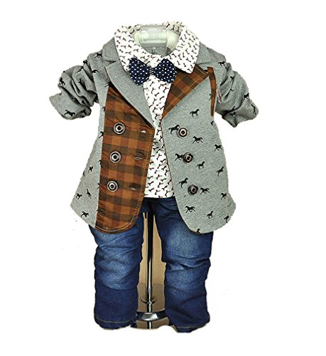 SOPOベビー男の子フォーマルPaid 3 Piece Outfit (ジャケット、Tシャツ、ジーンズ)グレー1 – 5年 12m グレー