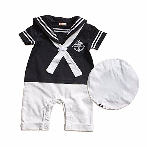 Betong Sakai Baby rompers Navy Sailor uniforms summer baby clothes Short sleeve one-pieces jumpsuit + hat baby boys girls clothing gift (90/9M, BLACK)