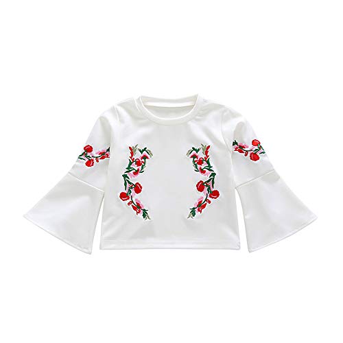 Mangjiu 植物柄 花 刺繍 ベルスリーブ トップ ベビー服 かわいい 甘い 女の子 子供服 赤ちゃん 日常 快適 柔らかい 幼児服 (120, ホワイト)