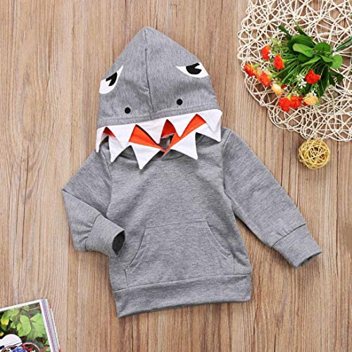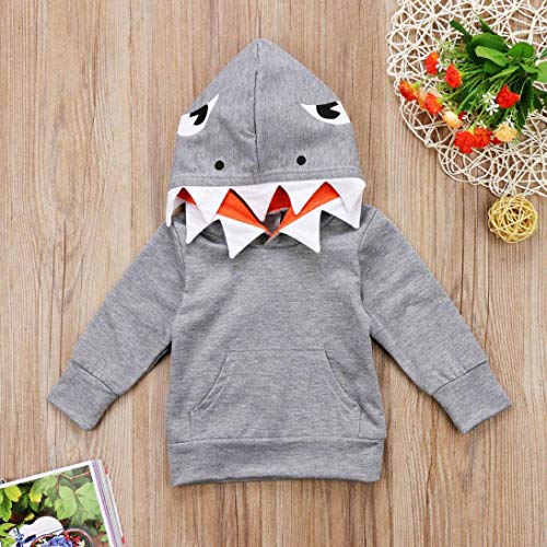 子供服 Mangjiu コットン 立体 サメ 春秋冬 カジュアル 仮装衣装 女の子 男の子 スウェットシャツ フード付き 長袖 キッズ服 (グレー, 120)
