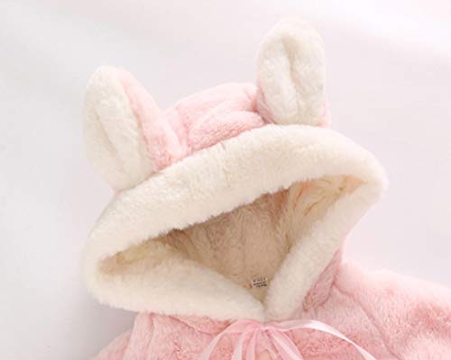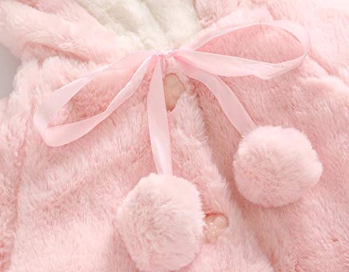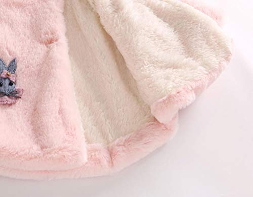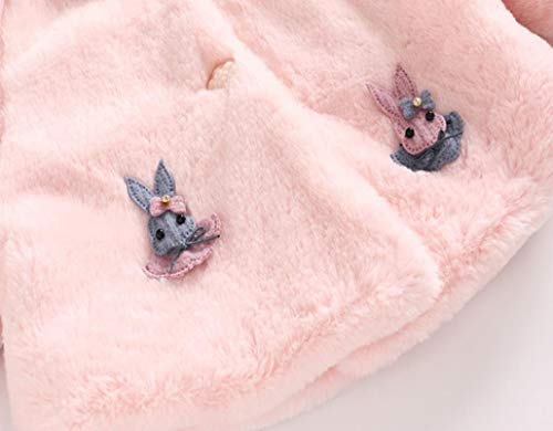 子供服 Mangjiu 女の子 ふわふわ 秋冬 ウサギの耳 フード付き コート 長袖 かわいい 保温 冷房 防寒対策 結婚式 披露宴 発表会 パーティー 入園式 (ピンク, L)