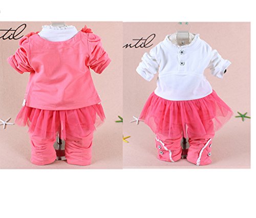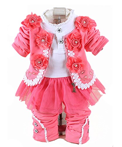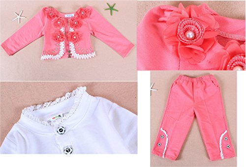 SOPO Baby Girl服装キュートフラワージャケットレーストップとパンツ3ピースセット9 – 24 m カラー: ピンク