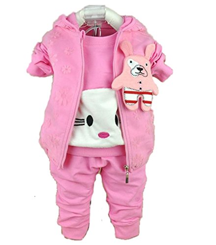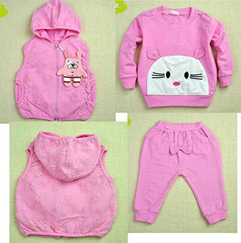 SOPOベビーガールClothingセットRabbitベスト+ Tシャツ+パンツ3個スーツ9 – 24 m カラー: レッド