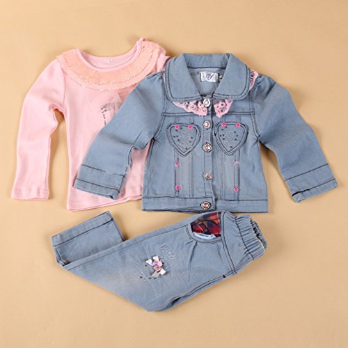 SOPOベビーガールズレースジーンズ3点セットジャケット、シャツ、パンツ)デニムファッション2 – 4歳 カラー: ブルー