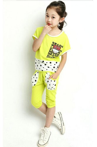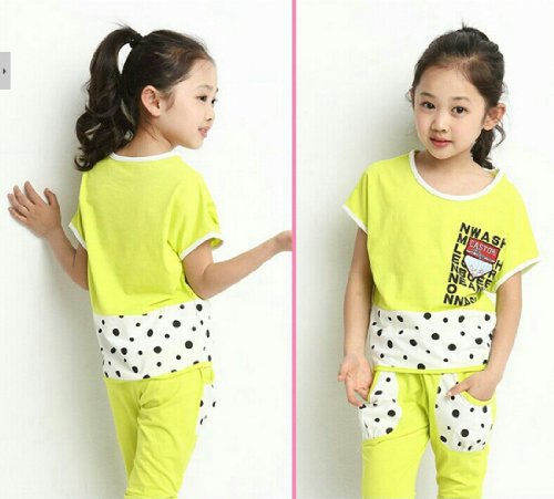 SOPO幼児用ガールズ夏服装ドットパッチワーク2 pcスポーツセットイエロー3t – 6t カラー: イエロー