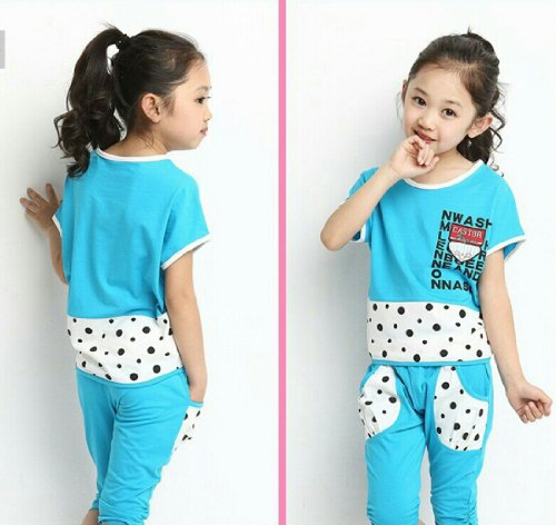 SOPO幼児用ガールズ夏服装ドットパッチワーク2 pcスポーツセットブルー3t – 6t カラー: ブルー