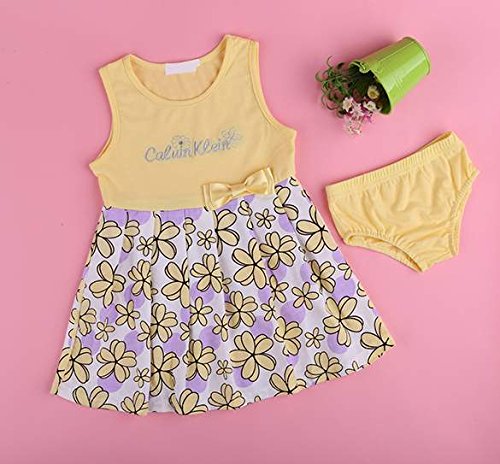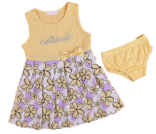 eshion子子供女の子ノースリーブプリンセスリボン花柄サンドレスドレスwithブリーフ2 – 7歳 カラー: イエロー