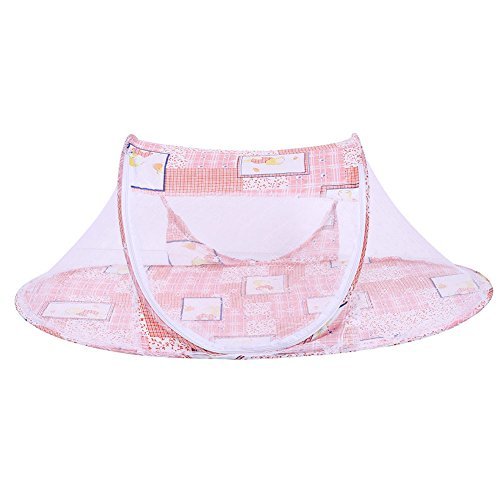Fiber material on top Provides a bug free environment while keeps your baby dry and out of harsh sunlight.;Breathable mesh protect your baby from insects bites, even when it is zipped up.;For ages: 0-2 years old children;Size: 110 * 65 * 60cm;Package Included : 1 X Tent 1 X Pillow