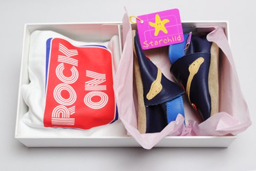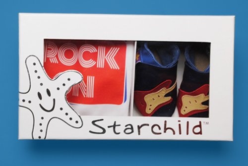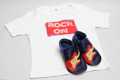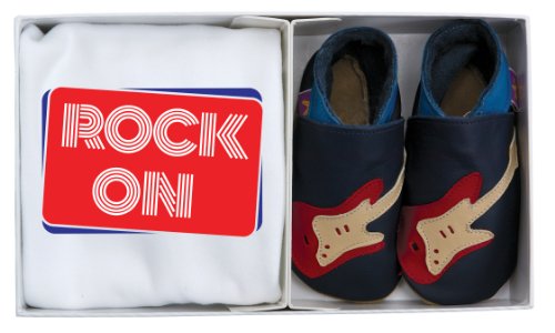 【英国製カーフレザーベビーシューズ】《ロックオンギターTシャツギフトセット rock on guitar T-shirt gift set》 (S)