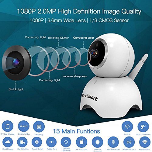ネットワークカメラEraSmart WIFIセキュリティカメラ| パンチルト、IRナイトビジョン、レコーディング24時間&双方向オーディオ付き1080P HDビデオ録音| ベビーモニター、高齢者、犬、ペット、Nanny Cam、セキュリティ監視