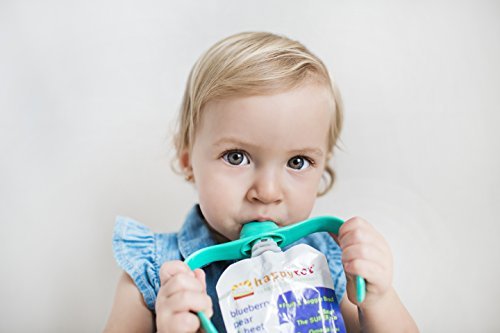 PouchBuddy (Turquoise) - Baby Self Feeding PouchBuddy. Works with Most Baby Food Pouches Including but Not Limited to Plum, Happy Tot, Happy Baby, Happy Family, Earth's Best, Gerber, Other National Brands As Well As Reusable/Refillable