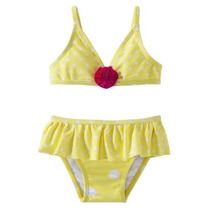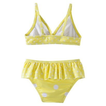 インポート子供水着 イエロー水玉フリルビキニ 12ヶ月ー5歳 (2T)
