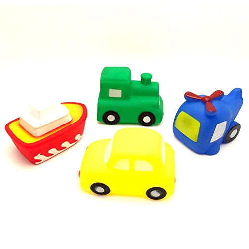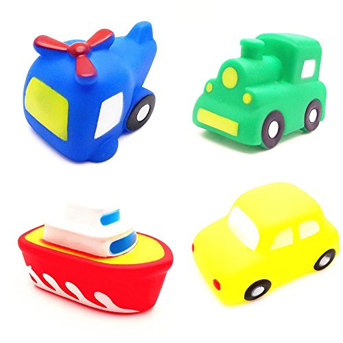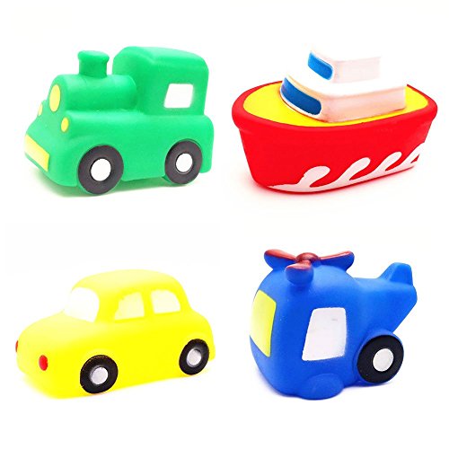 - 4台の素敵な車のおもちゃ(車、ヘリコプター、ボート、電車)、彼らはあなたの体が、おかしくて素敵な、あなたの赤ちゃんが入浴を愛してくださいsqeezeときに水と音に浮かぶことができます。