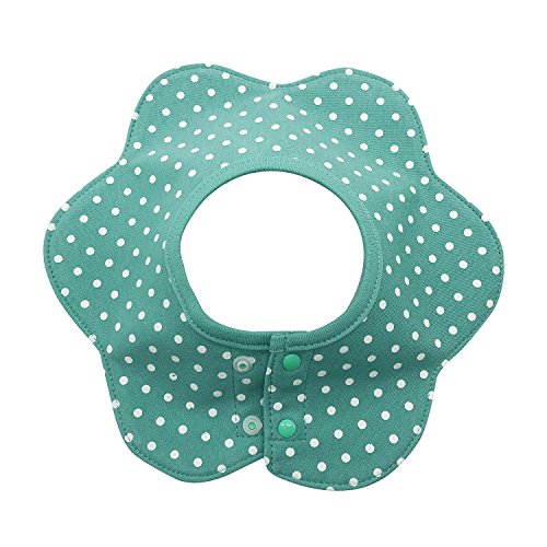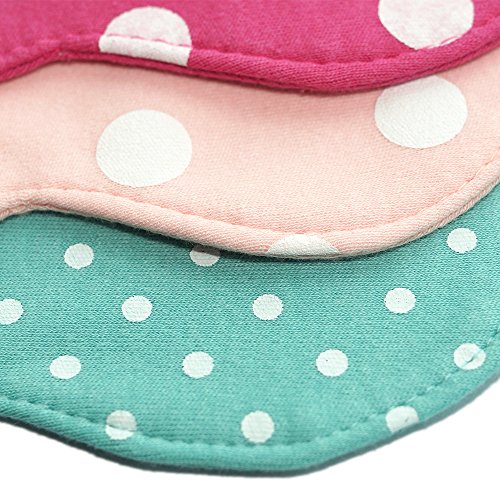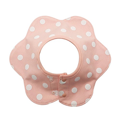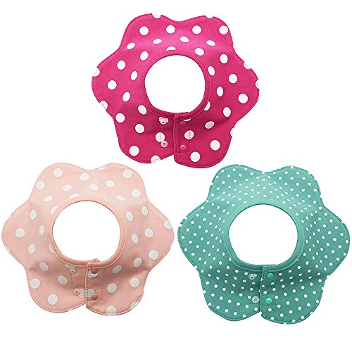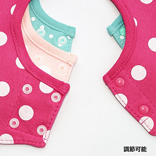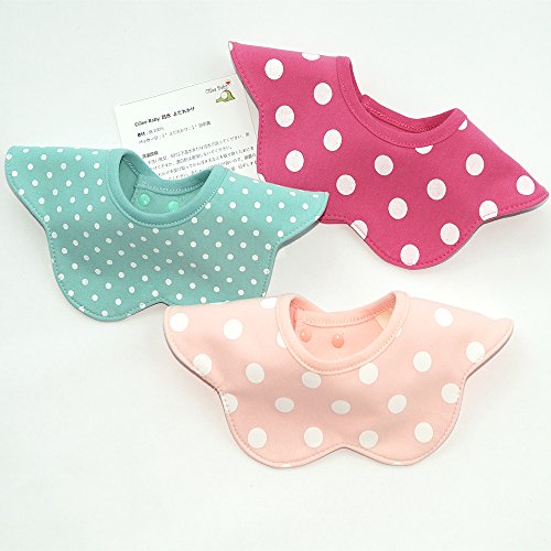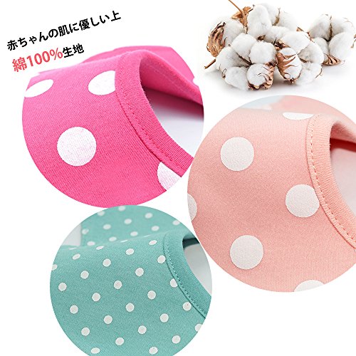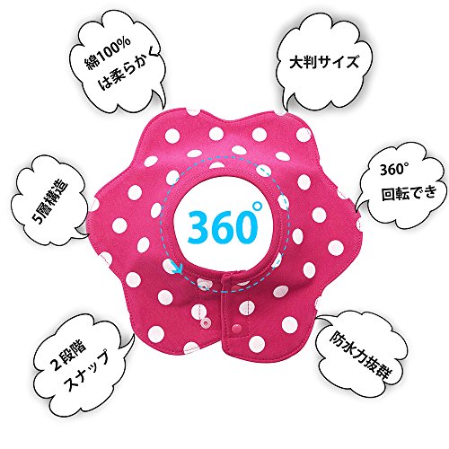よだれかけ スタイ防水 通気性良い 3枚 赤ちゃん 綿 5層厚さ エプロン ビブ 花びら型 360度回転 食事用 ピンクのスポット 新生児 0-3歳 女の子 保育園用 家用 グリーンボーダー ピンクドット バラ色ドット