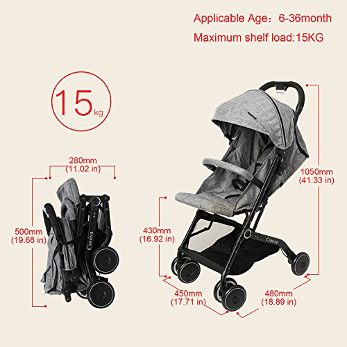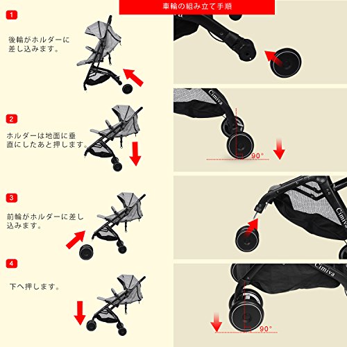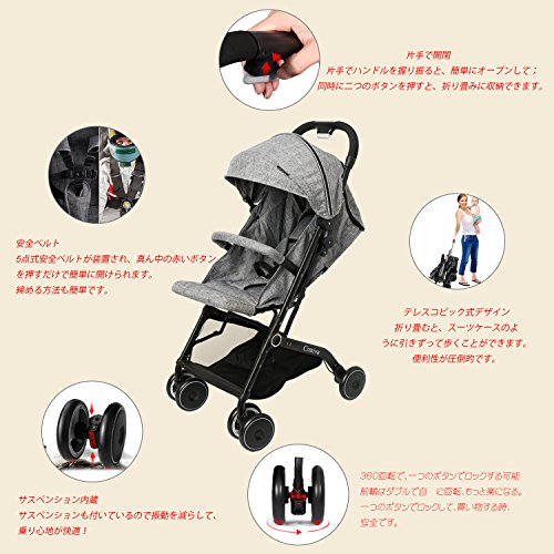 【ニューバージョン】ベビーカー Cimiva 4輪 ハンドル式 片手ワンタッチに折りたたみ式 5点式安全ベルト 後輪ブレーキ付き 前輪サスペンション付 生後1カ月~36カ月頃まで対象 (グレー)