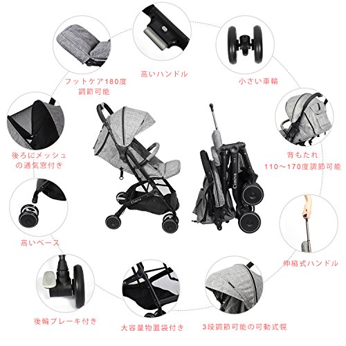 - 安全性:5点式シートベルトが付き、あなたのベビーをもっと安全に守れます。幌にカバー付きのメッシュ窓があるので、歩きながら赤ちゃんの様子が確認できます。