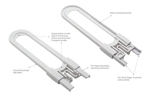 - Adjustable long U shaped lock for on mushroom shaped knobs and D shaped handles