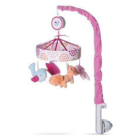 Plays Brahms' Lullaby;Ages 0-5 Months;Features pink owl, pink bunny, orange fox, and blue bird