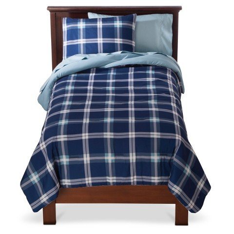 The Circo Plaid Comforter Set will cover your youngster's bed in the ultimate mix of comfort and style. The 180 thread count microfiber Comforter is thick and soft, filled with plush polyester for a luxuriously cozy sleep experience. The gorgeous Plaid design brings a timeless appeal that enlivens any child's bedroom decor. Fiber Content: 100 % Microfiber Fill Material: 100 % Polyester Care and Cleaning: Machine wash, warm; Non chlorine bleach when needed; Tumble dry, normal, low heat; Do not iron; Do not dry clean