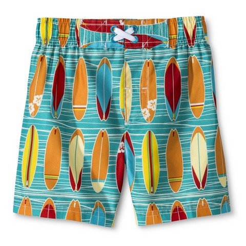 - カラフルなサーフボード柄 アロハっぽいカラーリングの男の子水着です。