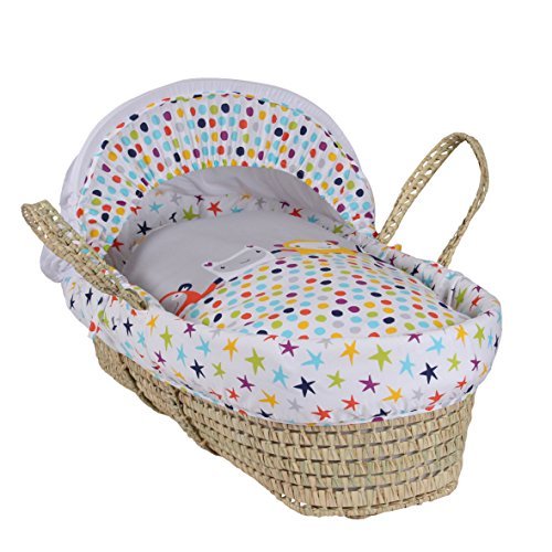 Moses Basket also includes: Padded liner, hood and hood fittings, mattress;100% Cotton;Suitable for boys and girls;Matching Rocking and Folding Moses Basket Stands also available;Features adorable characters