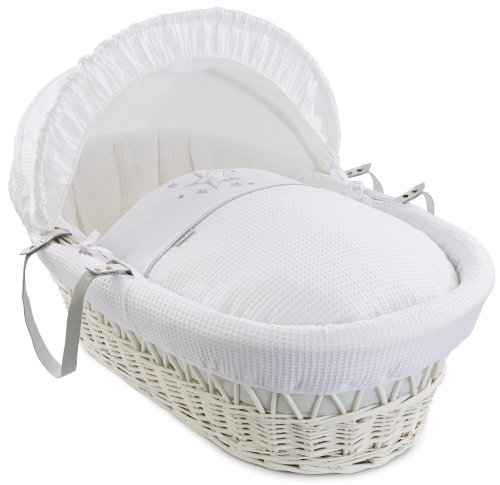 - Clair de Lune Stardust White Wicker Moses Basket (White)