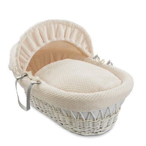 - Clair de Lune Honeycomb White Wicker Moses Basket (Cream)