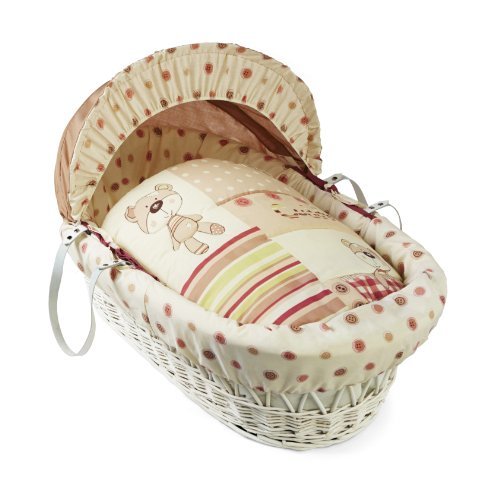 - Clair de Lune Little Bear White Wicker Moses Basket (Pink)