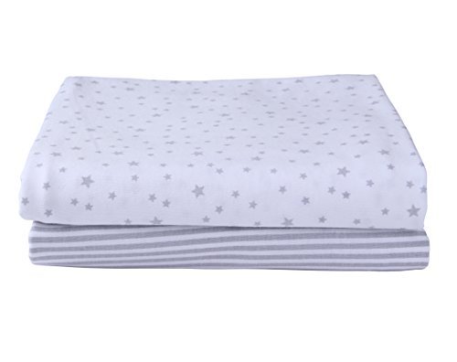 100% Cotton;Available in three colours;2 x Printed Sheets included - one with Stars, one with Stripes;Sizes available to fit Moses, Pram/Crib, Cot, Cot Bed;40 x 90cms?