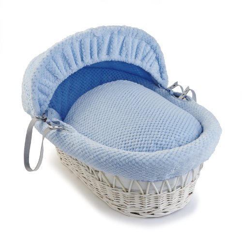 Clair de Lune Honeycomb White Wicker Moses Basket (Blue) by Clair de Lune