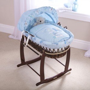 - This moses basket is complimented with beautiful top stitching detail.