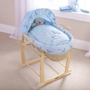 - This moses basket is complimented with beautiful top stitching detail.